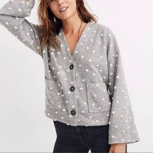 Madewell Texture & Thread Boxy Bobble Pom Pom Cropped Cardigan Grey XS