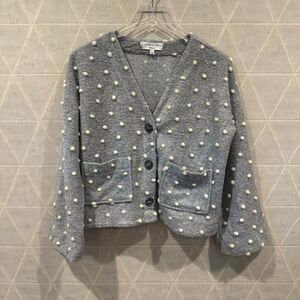 Madewell Texture & Thread Boxy Bobble Pom Pom Cropped Cardigan Grey XSmall EUC