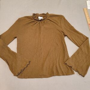 Madewell Texture & Thread Brwn Cotton long sleeve Top Shirt Size Small