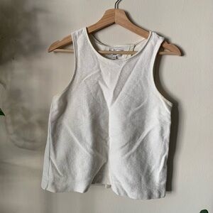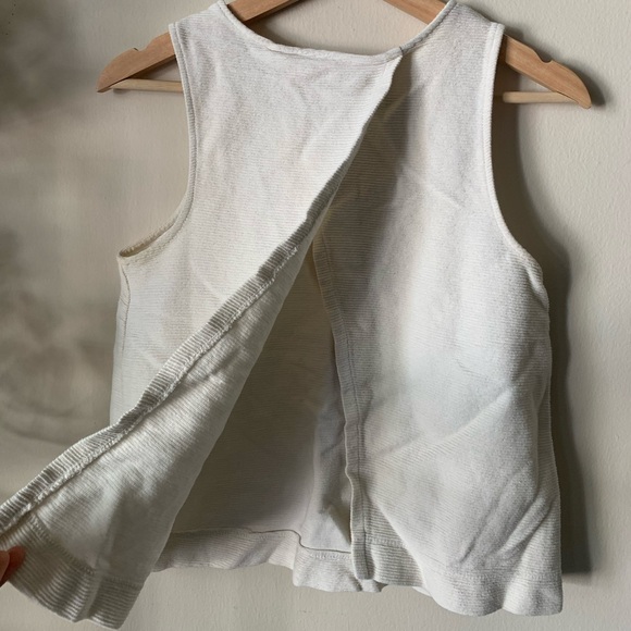Love the open back and horizontal rib texture of this 100% cotton tank! Color is like an off white / stone.