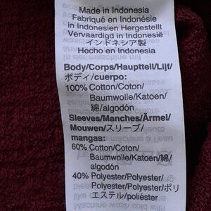 Very good pre-owned condition. Madewell Texture & Thread Eyelet Mix Ruffle-Sleeve Top. Size: Large. Color: Wine. Cotton body with cotton/poly sleeves. Machine wash. Pull over style with superlight jacquard body and eyelet sleeves with elastic at cuff to create a ruffle.