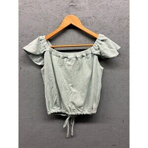 Madewell Texture & Thread Off Shoulder Top Women’s M Mint Green Button Front