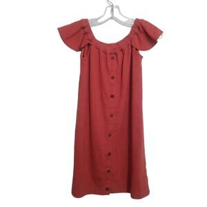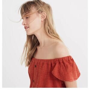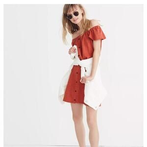 Excellent preowned condition Madewell Texture & Thread button front off the shoulder mini dress