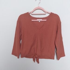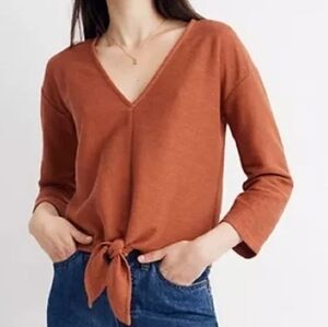 Madewell Texture & Thread Orange Long Sleeve Tie Front Top Size Small