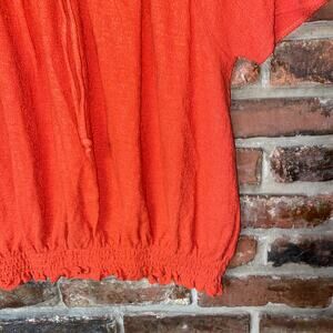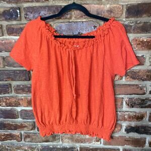 Madewell Texture & Thread Red Smocked Drawstring Top Women's Size Small
