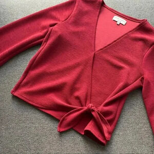 Madewell Texture & Thread Red V Neck Wrap Blouse Top Small