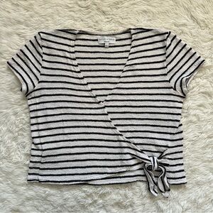 Madewell Texture & Thread Short-Sleeve Wrap Top in Stripe Black White S