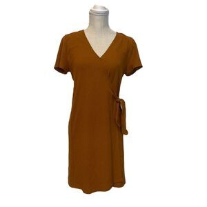 Madewell Texture & Thread collection combines truly touchable fabrics with pulled-together shapes. This office-to-date-night dress has a flattering faux-wrap silhouette and a hidden snap to help everything stay in place. Nonwaisted. Falls 35" from high point of shoulder. Poly/rayon/cotton/elastane.