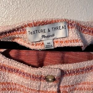Soft and textured, this Madewell Texture & Thread top adds casual polish to any outfit. Featuring a flattering square neckline, short elasticized sleeves, and a button-front design in a warm striped pattern.