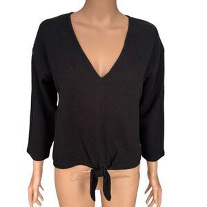 Madewell Texture & Thread Tie Front Top Womens Black Ribbed 3/4 Sleeve Sz M NWT
