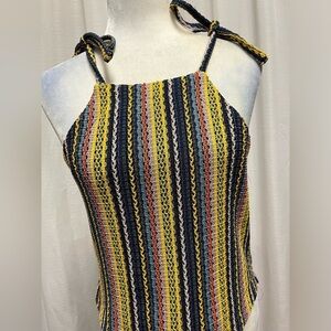Madewell Texture & Thread Tie-Shoulder Tank Top in Rainbow Crochet | size XS