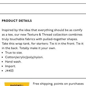 Madewell Texture & Thread Tie-Wrap Tank Top black XXS