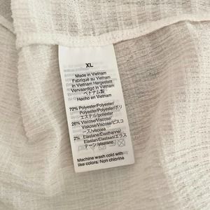 - 72% Polyester, 26% Viscose, 2% Elastane
