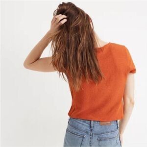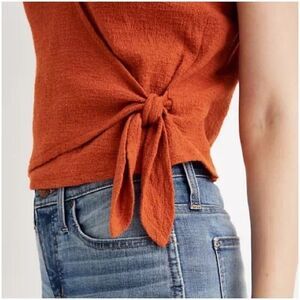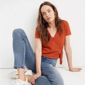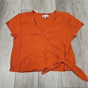 Madewell Texture & Thread V Neck Wrap Tie Crop Top Blouse Women's Medium Orange