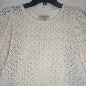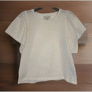 Madewell Texture & Thread Women’s Cream Eyelet Flutter Sleeve Blouse Top Sz M