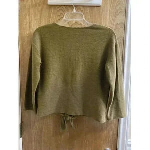 Madewell Texture & Thread Womens S Olive Long Sleeve Tie Front Shirt Ribbed