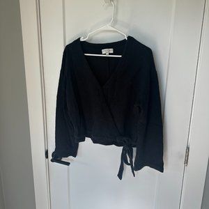Madewell Texture & Thread Womens Wrap Top Long Sleeve Black Medium