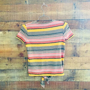 Inspired by the idea that everything should be as comfy as a tee, our new Texture & Thread collection combines truly touchable fabrics with pulled-together shapes. Stretchy and special, this striped tie-front top is the answer to all your what-to-wear worries.
