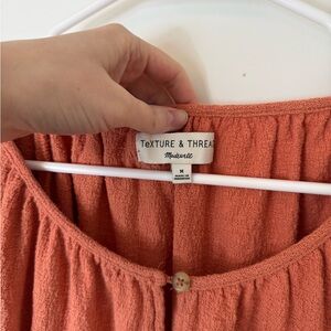Discover elegance with this rust blouse by Madewell, perfect for any occasion. Enjoy comfort and style effortlessly. Size medium and in like new condition. Still has spare button. No flaws.