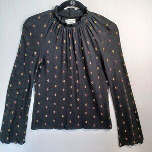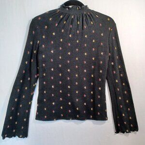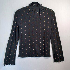 Madewell Texture and Thread Top Mock Neck Pullover Black Floral Size X Small