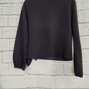 Madewell Texture and Thread Women's Black Long-Sleeved Open Tied Wrap Top Size S