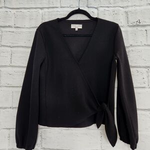 Madewell Texture and Thread Women's Black Long-Sleeved Open Tied Wrap Top Size 2