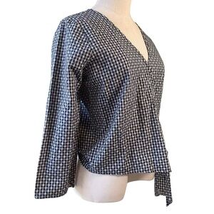 Madewell Textured Cotton Wrap Top Blue White Gingham - Size XXL