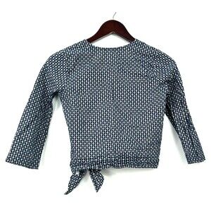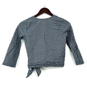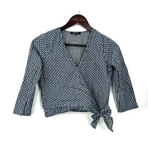 Madewell Textured Wrap Gingham Navy Blue Checkered Blouse Top Shirt XXS 1076R2