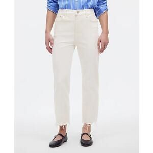 Madewell The '90s Straight Crop Jeans Raw Hem Cropped Denim Tile White NWT 33