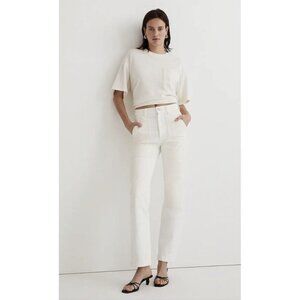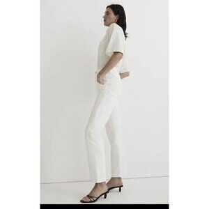 Introducing the Madewell The '90s Straight Jeans Two-Tone Workwear Edition in size 26 and white color. These jeans are made of high-quality denim fabric with a light wash and are perfect for women who want to flaunt a 90s-themed style. These jeans have a high-rise fit and feature pockets, making them not just fashionable but also functional. The brand is Madewell, known for producing top-quality garments that boast unique styles and comfortable fits. These jeans are a regular size type and fall under the category of Clothing, Shoes & Accessories > Women > Women's Clothing > Jeans.