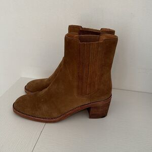 Madewell The Autumn High Chelsea Heeled Boot in Brown Suede Pecan Shell Size 6