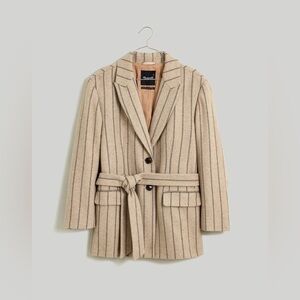 Madewell The Bedford Oversized Belted Blazer Jennifer Stripe Taupe Size 8