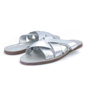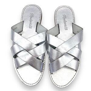 Madewell The Boardwalk Woven Slide Sandal Metallic Silver Leather Women’s Size 7
