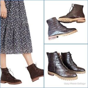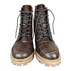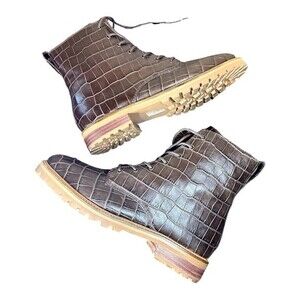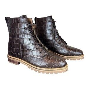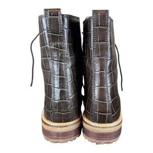 Madewell The Clair Lace-Up Boot in Croc Embossed Leather Combat Boot size 8.5