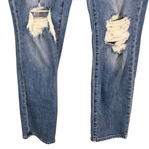 Dark medium wash with authentic fading. Natural highs and lows on seams.