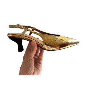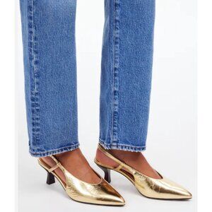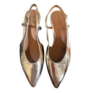 Madewell The Debbie Slingback Pumps Size 7 Metallic Gold Kitten Heel Pointed Toe