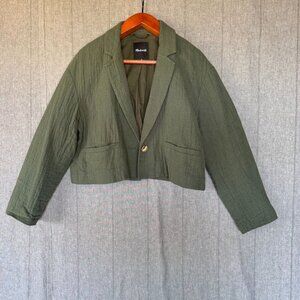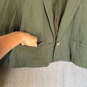 Madewell The Drop-Shoulder Single Button Linen Blend Foraged Green Boxy Crop Blazer Size Extra Large