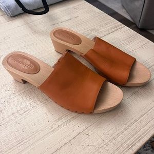 Madewell The Evelyn Slide Tan Heeled Clogs Slip On Open Toe Leather