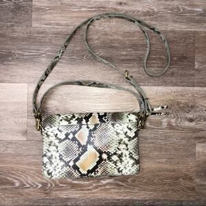 Madewell The Flap Convertible Crossbody Bag in Snake Embossed Leather in Dusty Fern Multi