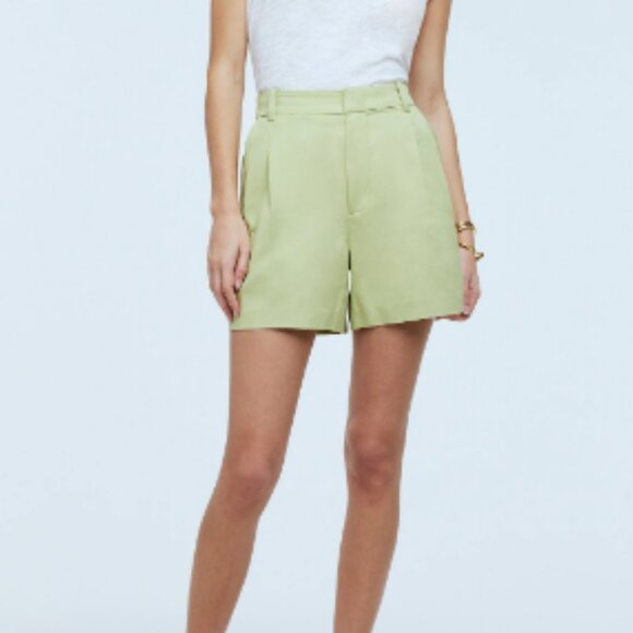 Madewell The Harlow High Rise Drapey Pleated Twill Short in Light Green NWT