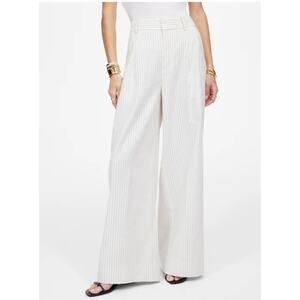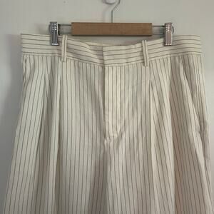 Madewell The Harlow Super Wide Leg Ivory Black Pinstripe Linen Blend Pants 4 New