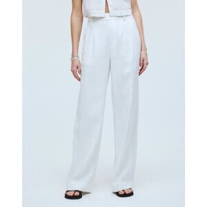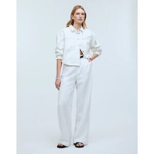 Madewell The Harlow Wide Leg Pants in 100% Linen Eyelet White NWT Size 14P