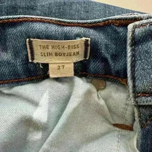 Madewell The High Rise Slim Boy Jean Ripped Frayed Blue Demin Women Size 27