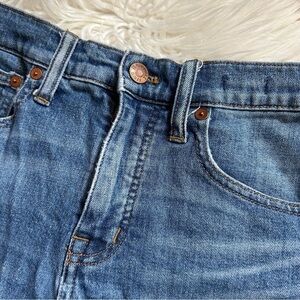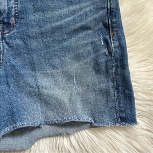 shorts have a superhigh rise and vintage-y raw hems that can be cuffed.