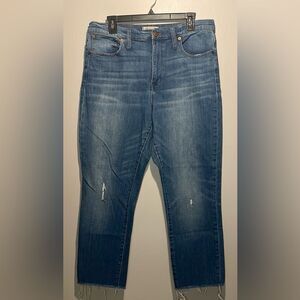 Madewell- The High-Rise Slim Crop Boyjean Distressed Frayed Hem- Size 30