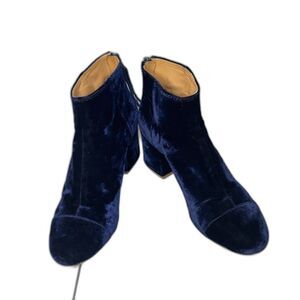 Madewell The Jillian Navy Blue Suede Leather Zip Heeled Booties Boots