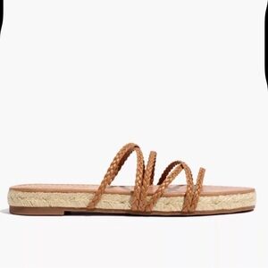 NWOT Step into comfort with these stylish tan sandals. Braided leather straps with a slim jute sole, lite padded footbed, rubber sole, 1” heel.