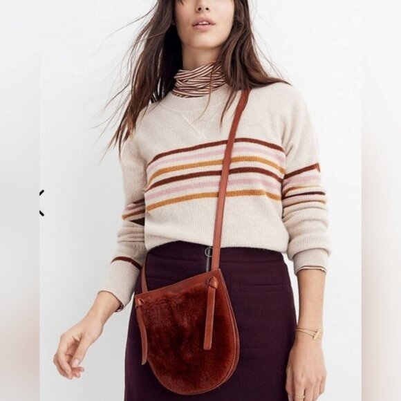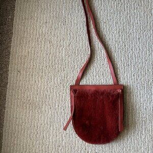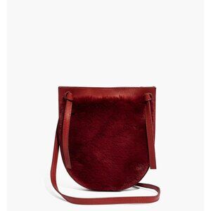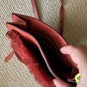 Madewell The Knot Crossbody Bag in Faux Fur. New without tags, never worn. Outside pocket made of fur. Red semi vegetable-tanned leather with a softly worn waxed finish that deepens into a distinctive patina.