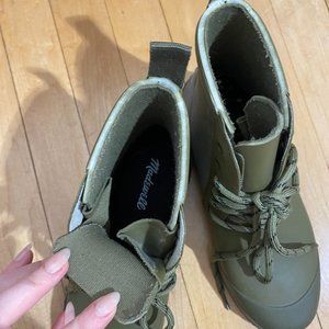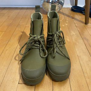 Madewell The Lace-Up Lugsole Rain Boot / Olive / 6M