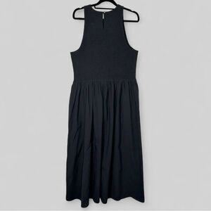 Madewell The Melody Bubble-Hem Smocked Midi Dress in Poplin True Black Size XXL NWT